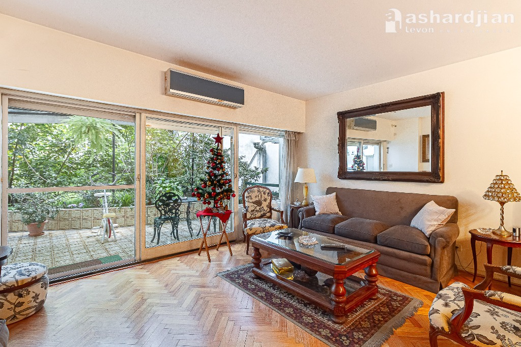 Muy lindo departamento de 3 ambientes con patio y parrilla, cochera fija, lugar para guarda de bicicletas, baulera más jardín de uso común. Patio propio de 35 m² con muy buen techo corredizo. Excelente ubicación a metros de la Avda. Santa fe y cercanía a bocas de subte línea D, Shopping Alto Palermo, Parque las Heras, Jardín Botánico. Amplio living comedor con aire acondicionado Split frío calor con salida a patio. Doble circulación, con entrada de servicio. Dos amplios dormitorios, principal en suite con Jacuzzi, vista al jardín con varios placard y aire acondicionado frío calor. Segundo baño completo de 2,40 x 1,25. Cocina con muebles altos y bajos, doble mesada mas comedor diario. Aire acondicionado split. Lavadero separado. Baño de servicio. Patio cubierto con techo corredizo que actualmente es un escritorio de 3,55 x 3,65. LAS MEDIDAS SON APROXIMADAS Y A SOLO EFECTO ORIENTATIVO<br/><br/>Oferta provista por el sistema SOM a Top Inmobiliario - Código ALP 10019